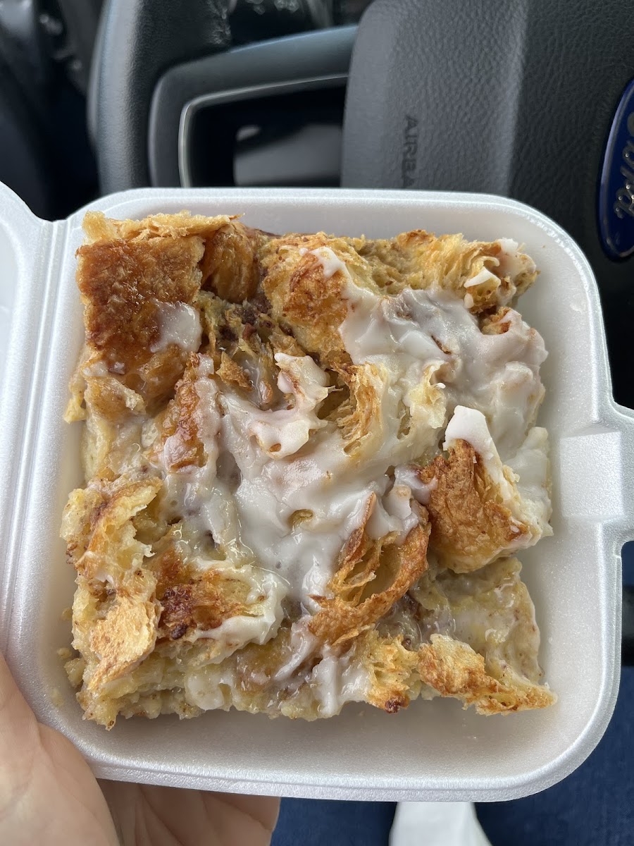 I just stopped in this morning and had the hardest time deciding what to order because it all looked SO good. I don't know if you can tell in the photos but the items are GIANT especially for the price. The owner was one of the sweetest humans ever and was so helpful! I went with the Strata (Meat croissant bake), the Egg Ham and Cheese Croissant (Made fresh when I got there), a french toast bar, and a Glazed Croissant. I could be happier with my selections. It is such a cute place with a ton of great options, I want to try the hand pies next! Definitely give this place a try, they also have a market part in the front with many jams and jellies and more!